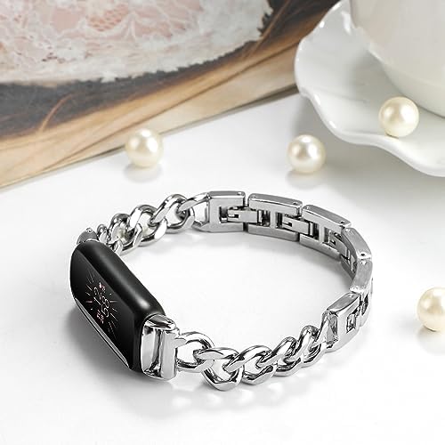 Compatible with Fitbit Luxe Bands, Stainless Steel Slim Metal Band Adjustable Straps Replacement Bands for Fitbit Luxe Smart Watch for Women Men