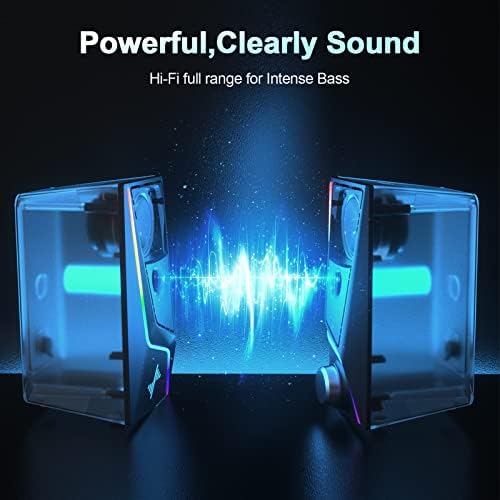 【Unique Speaker Ports for Deep Bass】Designed with 2 unique speaker ports, resulting in a strong vibration energy for a concentrated and rich bass sound. This will quickly be your favorite computer speakers for your desktop or laptop for movies, videos and gaming.