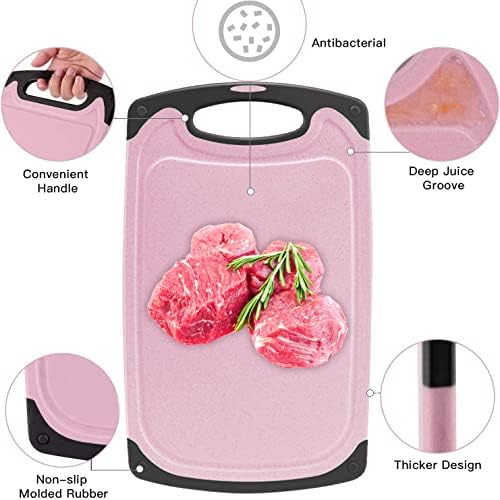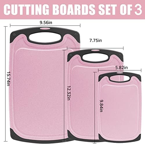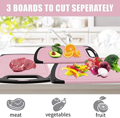 Cutting Boards Kitchen Cutting Board (3-Piece Set) Chopping Boards- Plastic Cutting Boards Set, Juice Grooves, BPA-Free and Dishwasher Safe (Pink)