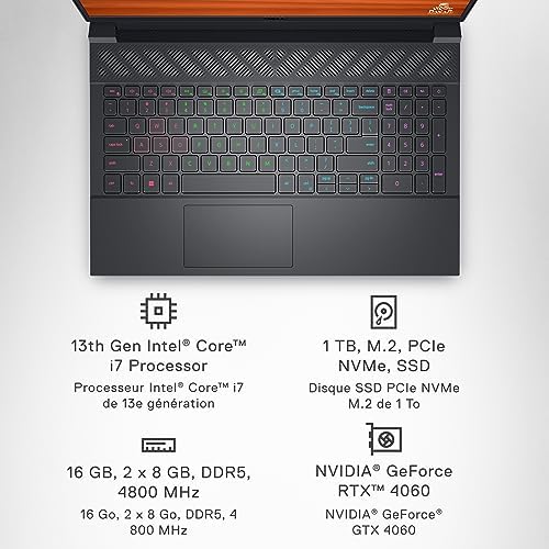 Dell G15 5530 Gaming Laptop – 15.6-inch FHD 165Hz 3ms (1920×1080) Display, Intel Core i7-13650HX, 16GB DDR5 RAM, 1TB SSD, NVIDIA GeForce RTX 4060 8GB GDDR6, Windows 11 Home – Dark Shadow Gray
