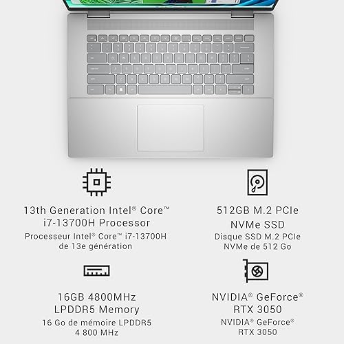 Dell Inspiron 7630 Laptop- 16-inch 16:10 2.5K 2560×1600 Display, Intel Core i7-13700H, 16GB LPDDR5 RAM, 512GB SSD, NVIDIA GeForce RTX 3050 GDDR6, Windows 11 Pro, Dell Services Included-Platinum Silver