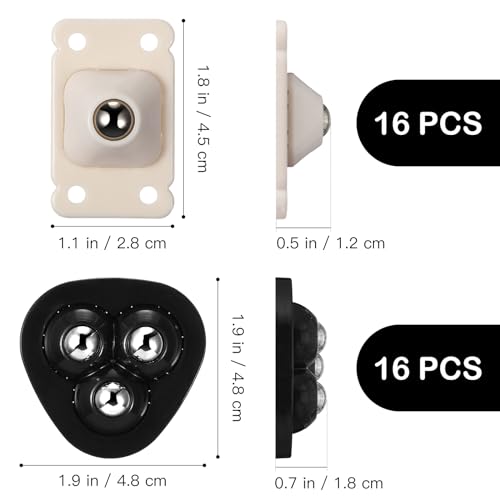 -We provide you with two different 360°rotation self adhesive caster wheels, 16pcs single-wheels and 16pcs 3-wheels, you can choose freely according to your needs! storage bins, trash cans, small appliances and more!