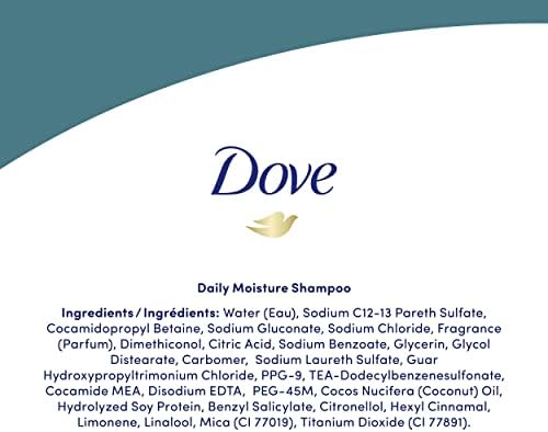 Daily grooming, styling and sun exposure are just a few of the things that contribute to everyday wear and tear on our hair. Prevent hair damage and protect your hair with Dove Daily Moisture Shampoo. It progressively hydrates and nourishes dry hair, leaving it feeling healthier. From the very first wash, our shampoo helps nourish and protect your hair from daily environmental aggression, giving you silkier, softer hair that’s up to 5x smoother.* Dove Daily Moisture Shampoo for dry hair is formulated with Bio-Nourish Complex, which helps to smooth hair on the outside while hydrating and nourishing from within. Also, try our Daily Moisture Conditioner, perfect for dry hair. Its nourishing formula helps to form a shield around the hair fibre to protect it from daily damage, maintaining your hair’s natural balance without weighing it down. Enjoy visibly silkier hair that is also easier to manage after just one shower. Say goodbye to damaged hair with Dove Daily Moisture hair shampoo and conditioner and enjoy healthy-looking, strong, and silky smooth hair. To carry out a complete Dove Daily Moisture hair routine, start with applying this shampoo to wet hair, lather, and rinse. Then, follow with our moisturizing conditioner. Massage the Daily Moisture Conditioner into hair and focus on the mid-length and ends. Comb through the hair with your fingers for even distribution. Rinse clean. Dove does not test on animals. Our products are certified Cruelty-Free by PETA. *Dove Daily Moisture Shampoo and Conditioner system versus non-conditioning shampoo