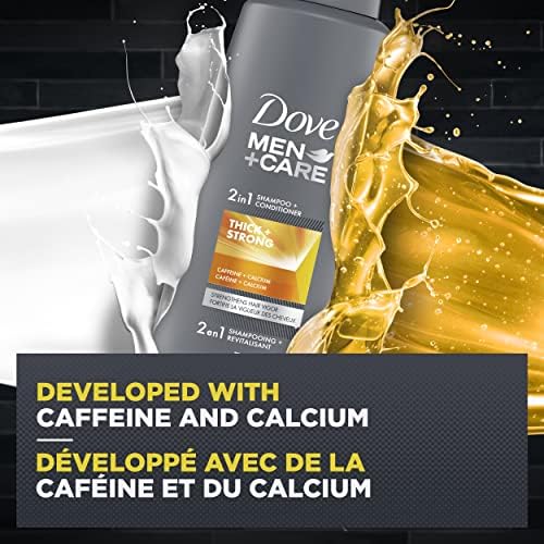 Dove Men+Care Thick + Strong 2-in-1 Shampoo + Conditioner is specially designed to make hair visibly thicker* and stronger**