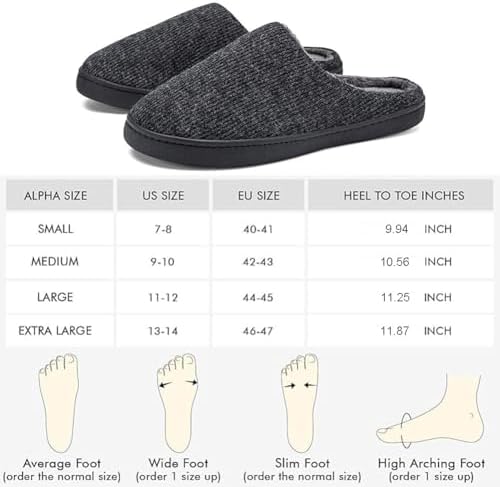 EASYLEE Men’s Slippers with Memory Foam, Warm Soft Plush Fleece Lining House Shoes, Anti-Skid Durable Rubber Sole Slippers for Men Home Indoor Outdoor