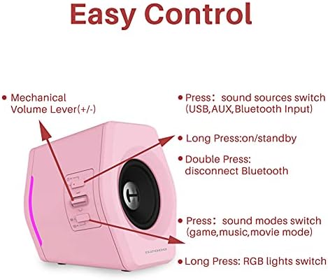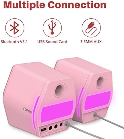 Edifier G2000 32W PC Computer Speakers for Gaming Desktop PC Laptop Mac Computer Woofer Speakers Bluetooth USB 3.5mm AUX Inputs RGB Lights Multimedia Speakers Pink