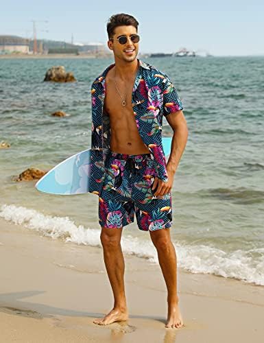 EISHOPEER Men’s Flower Hawaiian Sets Shorts Suits with Bucket Hats