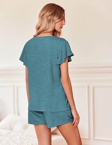 Ekouaer Women’s Pajamas Set Ruffle Sleeves Sleepwear V Neck Comfy 2 Piece Pjs Loungewear Set with Pockets