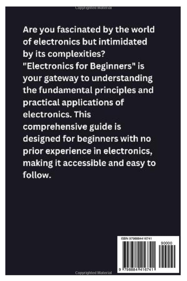 Starting with the basics, this book introduces you to essential concepts such as voltage, current, resistance, and circuits. You’ll learn how to read schematics, identify electronic components, and use a multimeter for troubleshooting. With step-by-step instructions and clear explanations, you’ll build a solid foundation in electronics theory and practice.