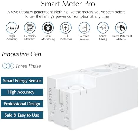eMylo Smart Meter Energy Monitor, 1-Phase Electricity Usage Monitor, 99% High Accuracy for Home Appliances/Solar/Net Metering, Imported Chips with a Long Lifespan