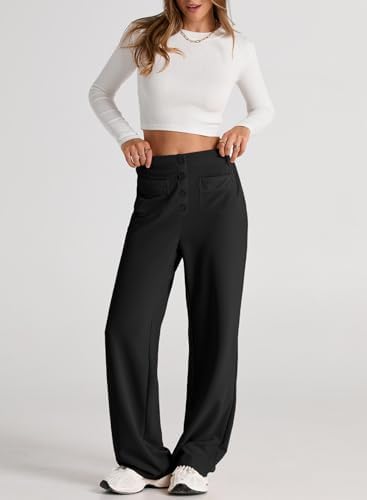 EVALESS Womens Casual Straight Leg Pants 2024 Fashions High Waisted Button Down Business Work Trousers with Multiple Pockets