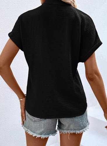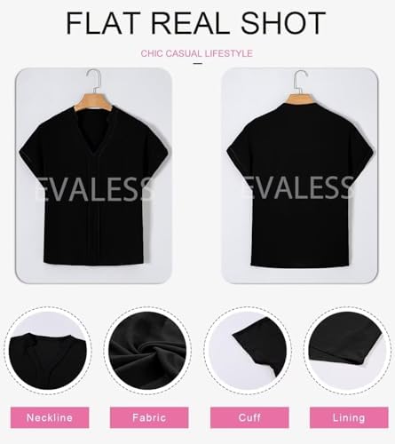 EVALESS Womens Fashion Tops Business Casual Outfits V Neck Ruffle Sleeve Blouses Trendy 2024 Short Sleeve Blouses Shirts
