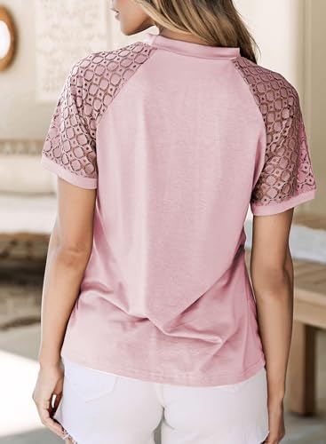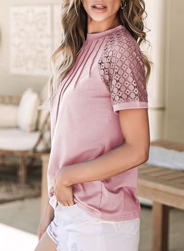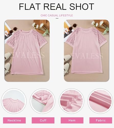 EVALESS Womens Fashion Tops Crewneck Sexy Patchwork Lace Short Sleeve Tee Shirts Ladies Casual Knitted Blouses