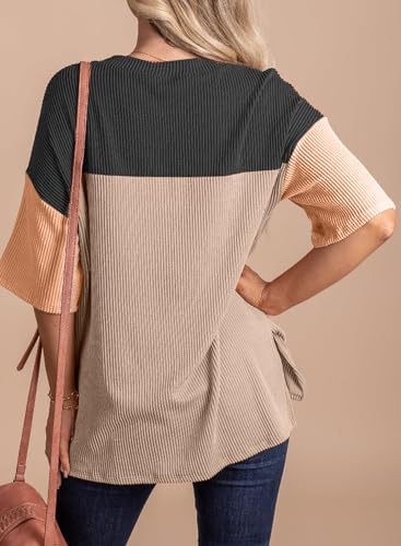 EVALESS Womens Summer Short Sleeve Crewneck Shirts Tops 2024 Fashion Color Block Casual Tunic Top