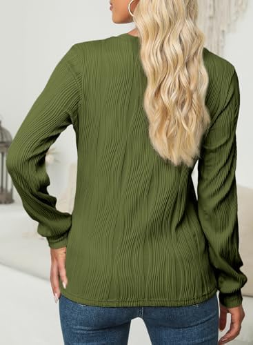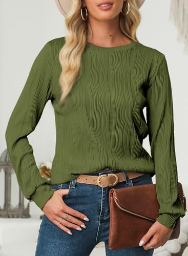 EVALESS Womens Tops Trendy 2024 Casual Long Sleeve Crewneck Basic T Shirts Ladies Loose Textured Pullover Blouses