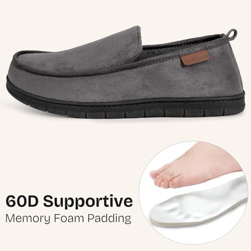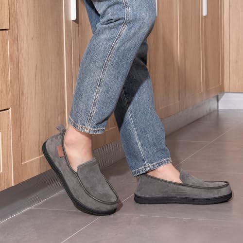 EverFoams Mens Moccasin Slippers Memory Foam Indoor Outdoor House Shoes with Rubber Sole