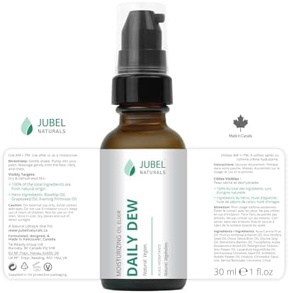 Introducing Jubel Natural Moisturizing Oil Elixir, Daily Dew – your daily dose of nourishment for radiant, hydrated skin. Crafted with care, this facial serum is a luxurious blend of nature’s finest ingredients, meticulously selected to hydrate, soothe, and rejuvenate your complexion.