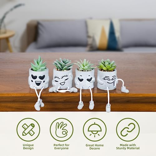 🌱 Cute Potted Succulents Design: This set of cute and succulent mini decorative fake plants have a realistic appearance and different expression styles. The unique gray hanging foot design makes lifelike artificial succulents more visually striking. Makes your home or office take on a new look.