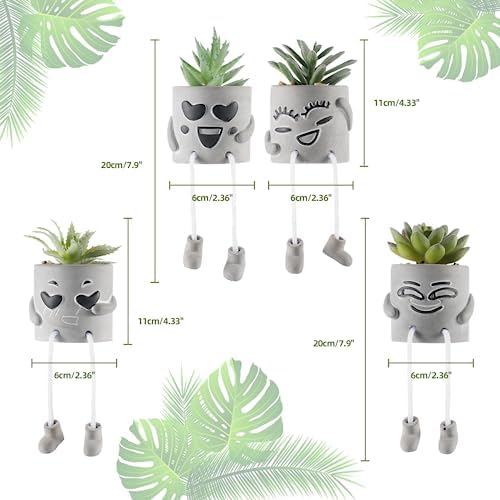 🌱 What You Will Get: 4 different styles fake succulents with creative cement pots. These small artificial plants in pots size about overall height: 7.9inch, width: 2.36inch. Small in size and strong in personality, they can be placed anywhere you want and look vibrant all year round.