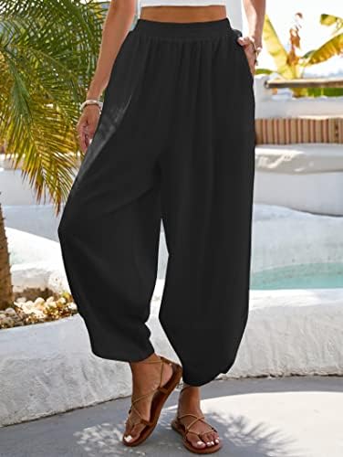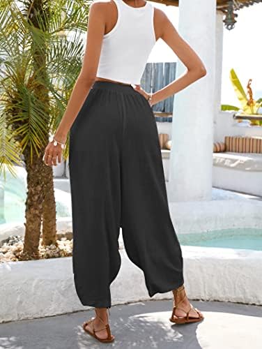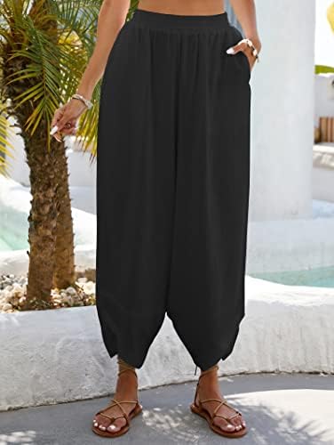 Famulily Women Pants Harem Trousers for Yoga Brach Summer High Waist Solid Split Hem Loose Fit Cotton Linen Palazzo
