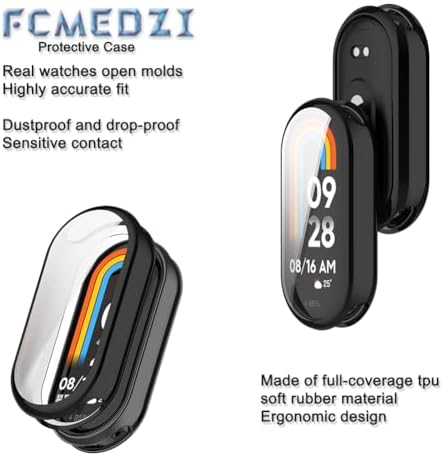 FCMEDZI Screen Protector Case for Xiaomi Mi Band 8 Smart Bracelet Compatible, The screen protector case is made of high-quality, ultra-thin TPU material, which does not affect the accuracy of the touch screen, and allows easy access to all ports and buttons without interfering with the insertion of the band and sensors. Mi Band 8 case is made of high quality and soft TPU, unorganized, sweatproof, waterproof, soft, lightweight and durable, giving you a wonderful wearing experience. If you have any questions about the product, installation or use process, welcome to contact us.FCMEDZI will be happy to serve you until your problem is solved.