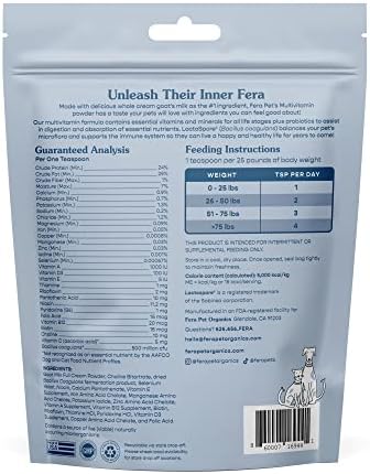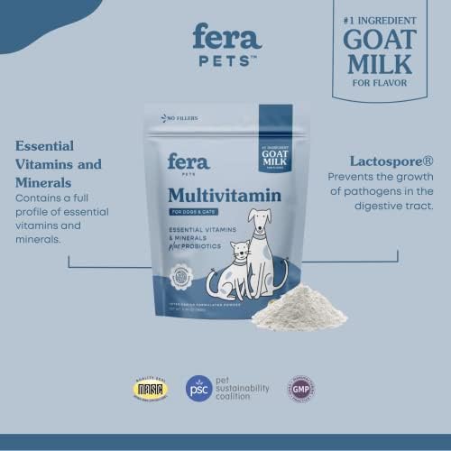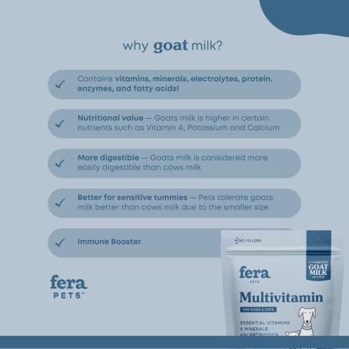Fera Pets Multivitamin Goat Milk Cat & Dog Food Topper – Cat & Dog Multivitamin with Probiotics and Essential Vitamins & Minerals – 60 Servings