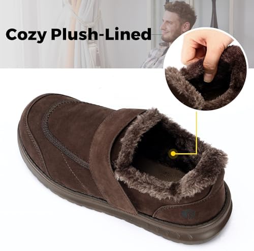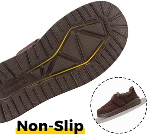 FitVille Wide Men’s Slippers Non Slip Plush House Slippers with Adjustable Strap Diabetic Shoes