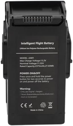 APPLICABLE MODEL: Intelligent flight battery replacement is compatible with for Air 1, with rated voltage of 11.55V, and maximum voltage of 13.2V