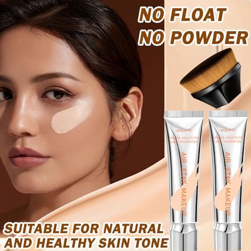 Foundation Cream,Full Coverage Liquid Foundation Lightweight Long Lasting Waterproof Concealer Foundation Makeup Kit with Brush,Oil Control & Hydrating Foundation Makeup for Women