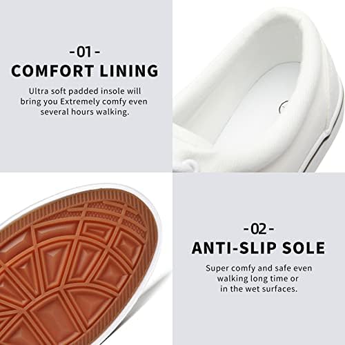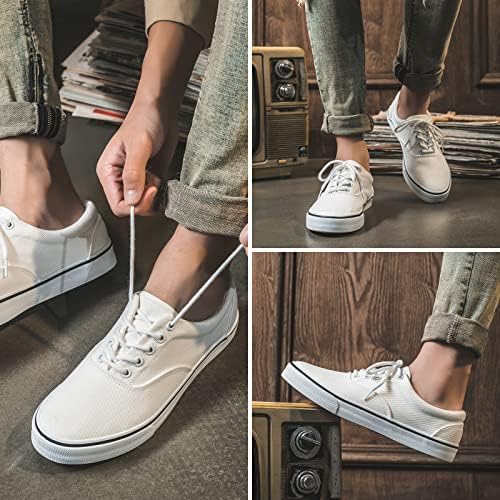 FRACORA Mens White Canvas Shoes Low Top Canvas Sneakers Lace Up Casual Shoes