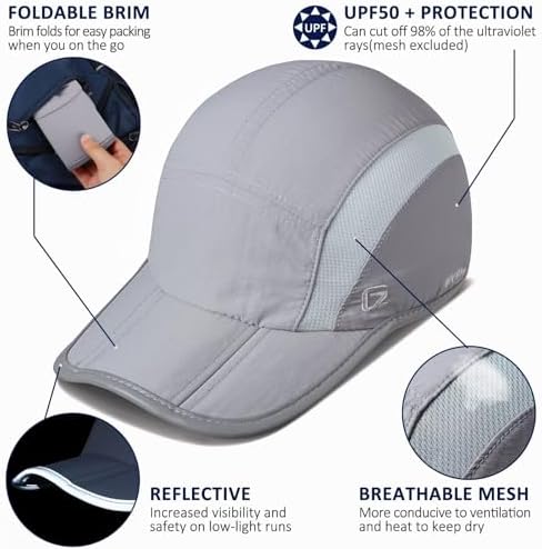 GADIEMKENSD Foldable Reflective Outdoor Hat Breathable UPF 50+ Sun Protection Sport Hats