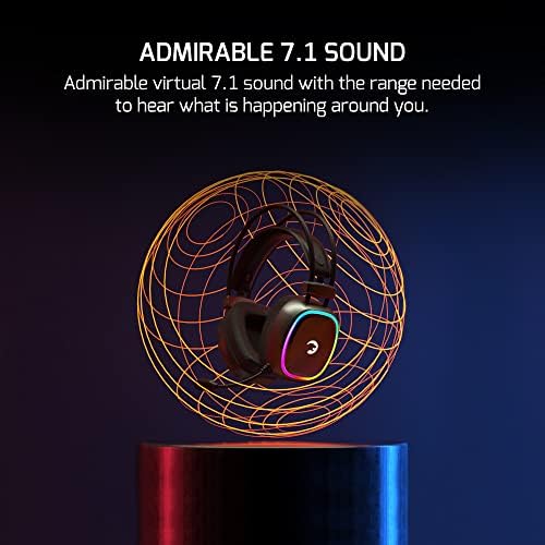 GAMEPOWER Raijin USB Gaming Headset – 7.1 Virtual Surround Sound, Wired Led Headphones with 50MM Drivers, Comfort Design, 360 Spatial Audio, Noise Cancelling Mic for PC, PS4, PS5, Black
