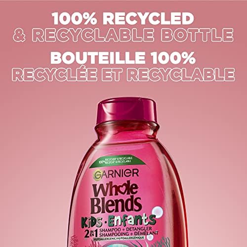 Garnier Whole Blends Kids 2-in-1 Hypoallergenic Shampoo & Hair Detangler with Cherry and Soft Almond Gently Cleanses and Detangles, The Little Mermaid, 250ml – Packaging May Vary
