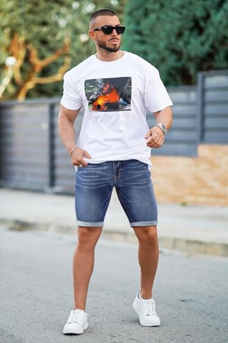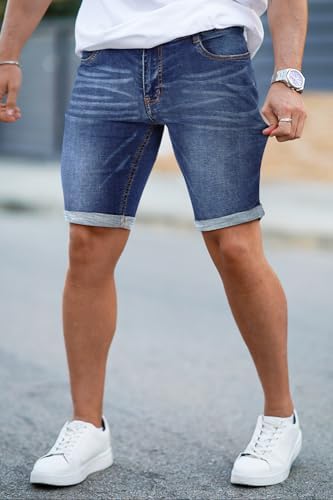 GINGTTO Mens Jean Shorts Slim Fit Denim Shorts Ripped Jeans