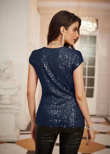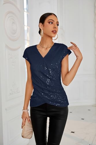 GRACE KARIN Womens Sequin Top Glitter Sparkly Shirt V Neck Cap Sleeve Twist Front Club Party Shimmer Blouse