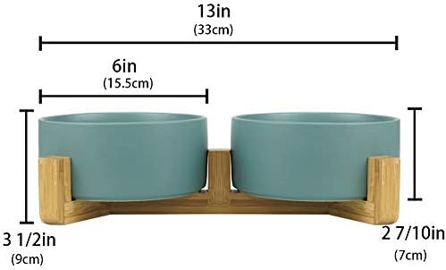Be the first to review “Green Ceramic Cat Bowl with Wood Stand No Spill Pet Food Water Feeder Cats Small Dogs Set of 2”