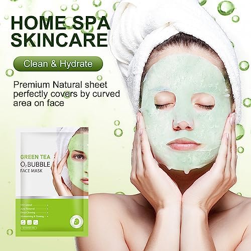 Green Tea O2 Bubble Face Masks Skincare, Deep Cleansing Sheet Masks for Face, Hydrating & Soothing Facial Mask for All Skin – Daily Facial Sheet Mask for Women & Men, Pack of 10