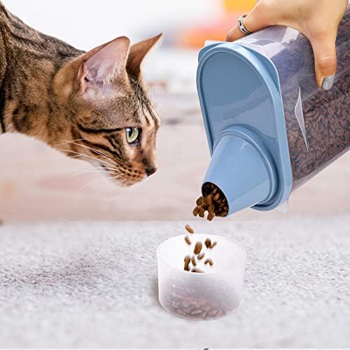2 packs containers – suitable for those who have more than 2 pets or hold different foods for your pet.Measuring cup – “How much do I need to feed” will not be a challenge for you again, accurate feeding is scientific feeding.Seals tightly – keep your pets away from stealing the food.Funnel-type design – easily to pour Wide application – besides pet food, snacks, it works well for flour, rice, nuts, sugar etc.