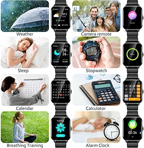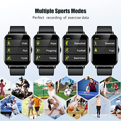 【SUPPORT MULTI-SPORT MODES】The sports watch can supports multiple sports modes like walking, running, cycling, skipping, pingpong, tennis, basketball, football, badminton, baseball and yoga. It can record your specific activity data (such as steps, calories, distance and minutes active) to achieve better fitness effects. This smartwatch also including another practical tools like pedometer, music control, remote control photograph, sedentary reminders, alarm clock, stopwatch and so on