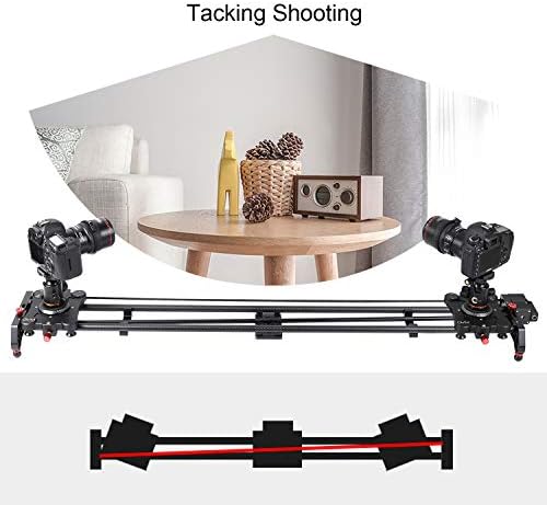 Tracking shooting – adjust the red knobs on both sides of the camera slider to the upper left and lower right (120 degrees Panorama support time lapse or video shot)-support manual electric two modes. Adjustable foot design to ensure the dolly track could be work on the horizontality.