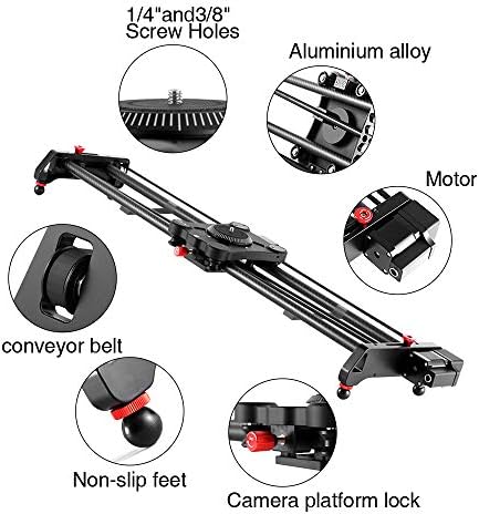 High quality camera slider- The 48”, 120cm motorized camera slider is made of carbon fiber with a stable carriage assembly ,slide rails are equipped with multiple 1/4 “and 3/8” Screw ports on both sides and in the middle, compatible with a variety of tripods.