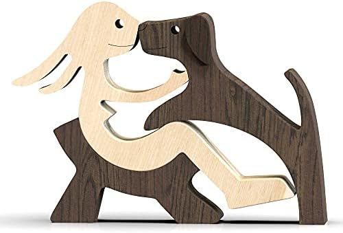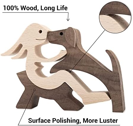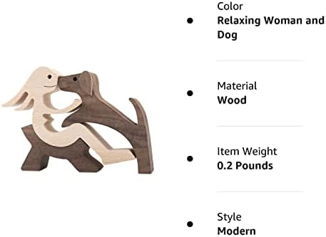 Handmade Wooden Statue, Sitting Woman and Dog, Wood Decor Accents Craft Figurine for Bedroom Home Office Shelf Decor Gift Natural ECO Friendly
