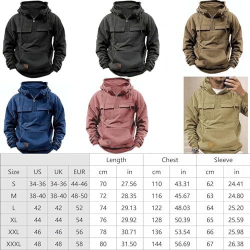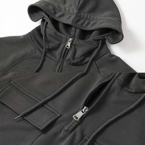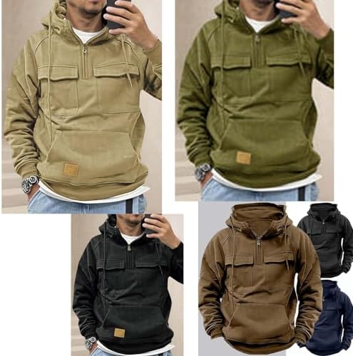 Hdnaihpp Men Tactical Sweatshirt Quarter Zip Cargo Pullover Hoodies Workout Sports Running Outdoor Winter