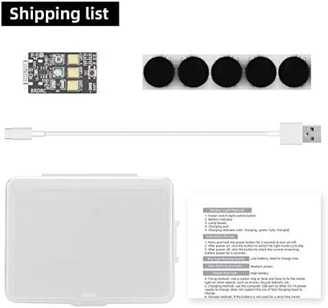 Mini ultra bright drone strobe light include 5pcs 3W high power lamp beads(3 white,1 red,1 green),and 10 lighting modes with one key switch.The unique power display function allows you to monitor the remaining power of strobe light.