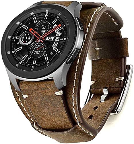 Hepsun Compatible with Samsung Galaxy Watch 46mm/Watch 3 45mm/Gear S3 Frontier/Classic/Pebble Time/Garmin Vivoactive 4/Fossil Q/HUAWEI Watch 3 Bands, 22mm Vintage Genuine Leather Band Cuff Strap for Men Women(Coffee)
