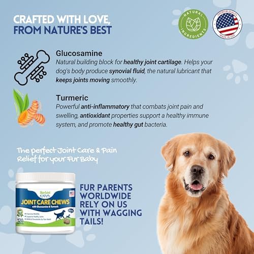 Herbion Pets Joint Care Chews with Glucosamine & Turmeric, 120 Soft Chews – MSM & Chondroitin for Pain Relief – Improves Mobility – Supports Healthy Joints – Made in USA. – for Dogs 12 Weeks+