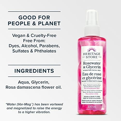 Heritage Store – Rosewater & Glycerin | Hydrating Facial Mist | Locks in Moisture for Radiant Skin | Vegan & Cruelty Free | Alcohol & Paraben Free | 237 ml (Pack of 1)