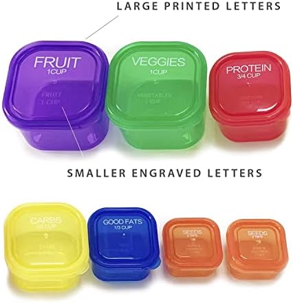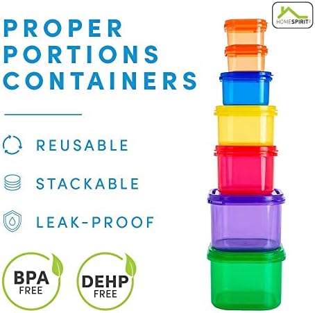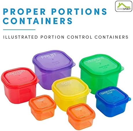 Home Spirit Proper Portions Containers for Weight Loss for Adults, 21 Day Diet and Food Plan, Bariatric Portion Control Cups, 2 Sets of 14 Containers, Sized for Daily Calorie Intake