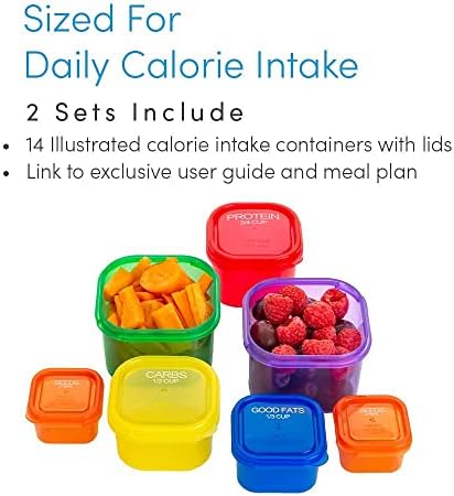 TWO SETS INCLUDED- your smart choice of weight loss equipment for men and women, family and friends. BPA free, total 14 containers, instructions and food guide included to help you calculate your body’s calorie requirement with the different combinations of food source, and gives you the best understanding of choosing and implementing a balanced diet