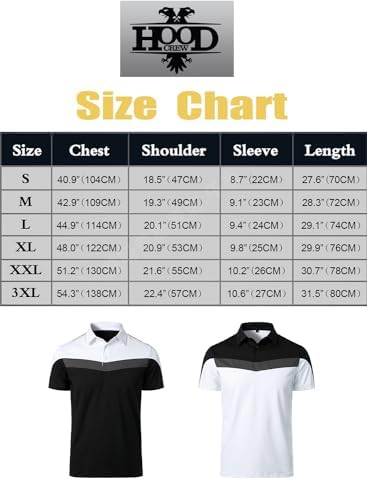 Men’s Short Sleeve Sports Golf Polo T-shirt Size Information